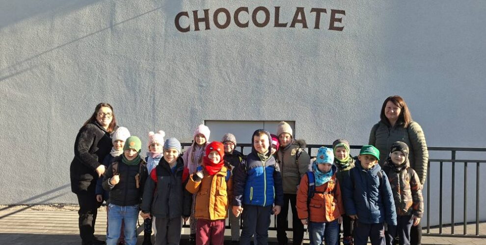 19 listopada 2025r. uczniowie klas 1-3 wybrali się na wycieczkę do Beskid Chocolate – Manufaktury Czekolady. Na początku wszyscy wzięli udział w warsztatach, podczas których każdy z uczestników dekorował swoją tabliczkę czekolady różnymi dodatkami oraz projektował własne opakowanie na czekoladę. Następnie przewodnik oprowadził dzieci po fabryce, opisując cały proces tworzenia czekolady. Wizyta w Fabryce Czekolady była wspaniałą zabawą oraz ciekawą lekcją na temat produkcji tego smakołyka.
