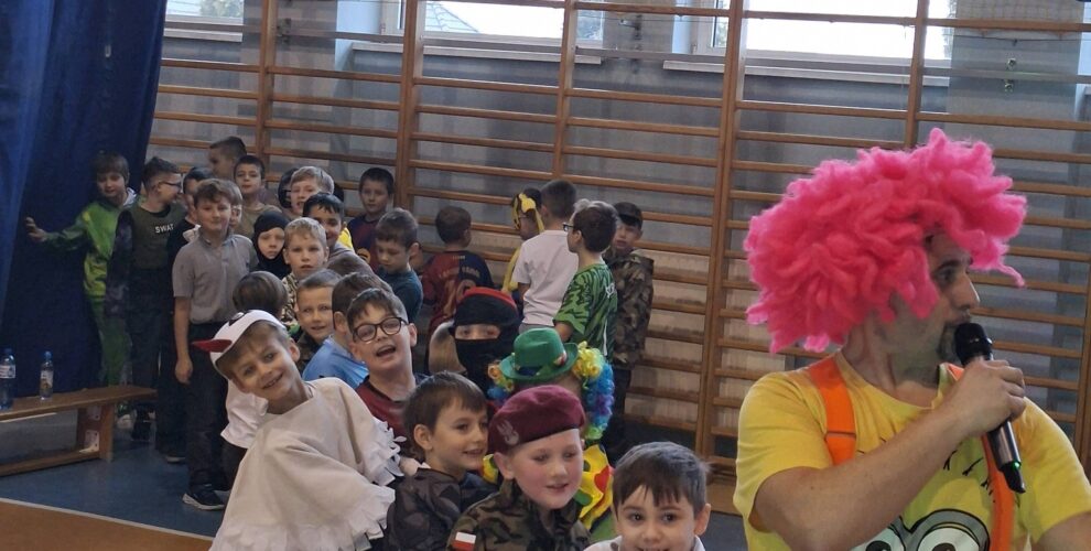 W dniu 26 stycznia 2026r. w naszej szkole odbył się bal karnawałowy dla uczniów klas I-III. Wydarzenie miało na celu integrację dzieci, rozwijanie umiejętności współpracy oraz wspólną, radosną zabawę w karnawałowej atmosferze. Uczniowie prezentowali się w strojach postaci z bajek oraz superbohaterów. Podczas balu przeprowadzono również zabawy oparte na współpracy. Bal karnawałowy przebiegł w miłej atmosferze, dostarczając uczniom wielu pozytywnych emocji.
