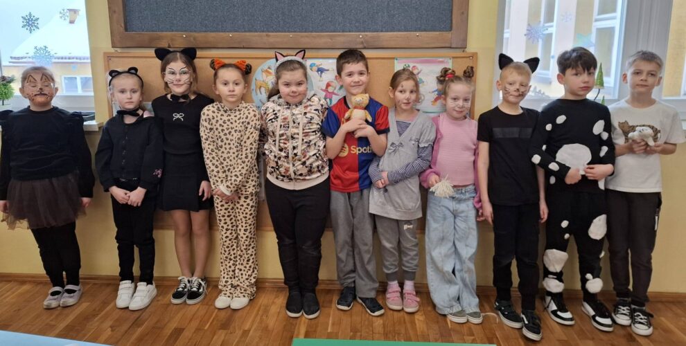 Uczniowie klas I-III wykazali się ogromną kreatywnością i przyszli do szkoły w przepięknych kocich strojach. Wszyscy wyglądali wspaniale.