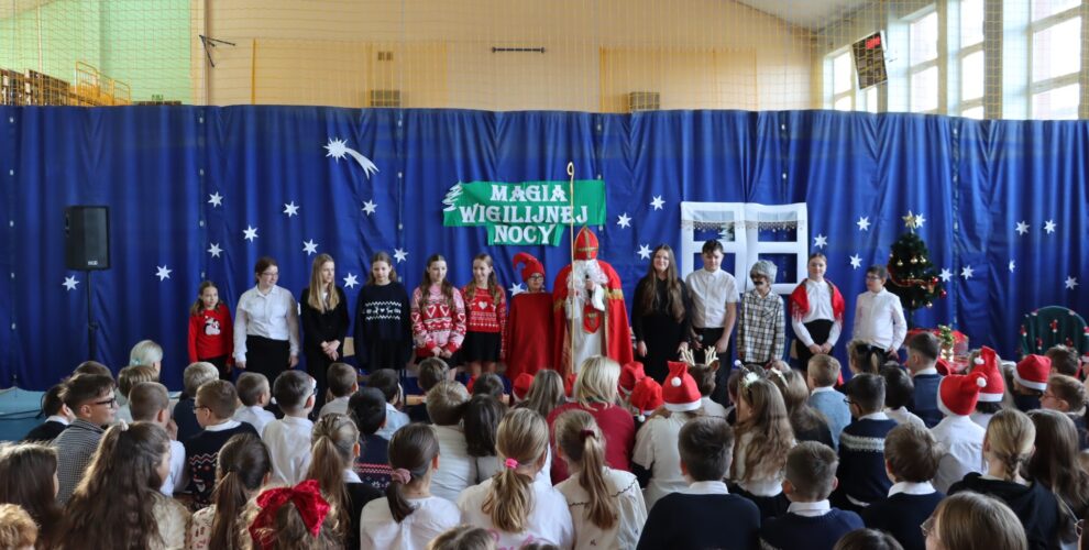 W przedświątecznej atmosferze radości i wzruszenia uczniowie należący do kółka artystycznego zaprzezentowali przedstawienie bożonarodzeniowe pt. ,,Magia Wigilijnej Nocy”.